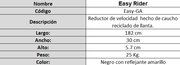 Los reductores de velocidad Easy Rider son: